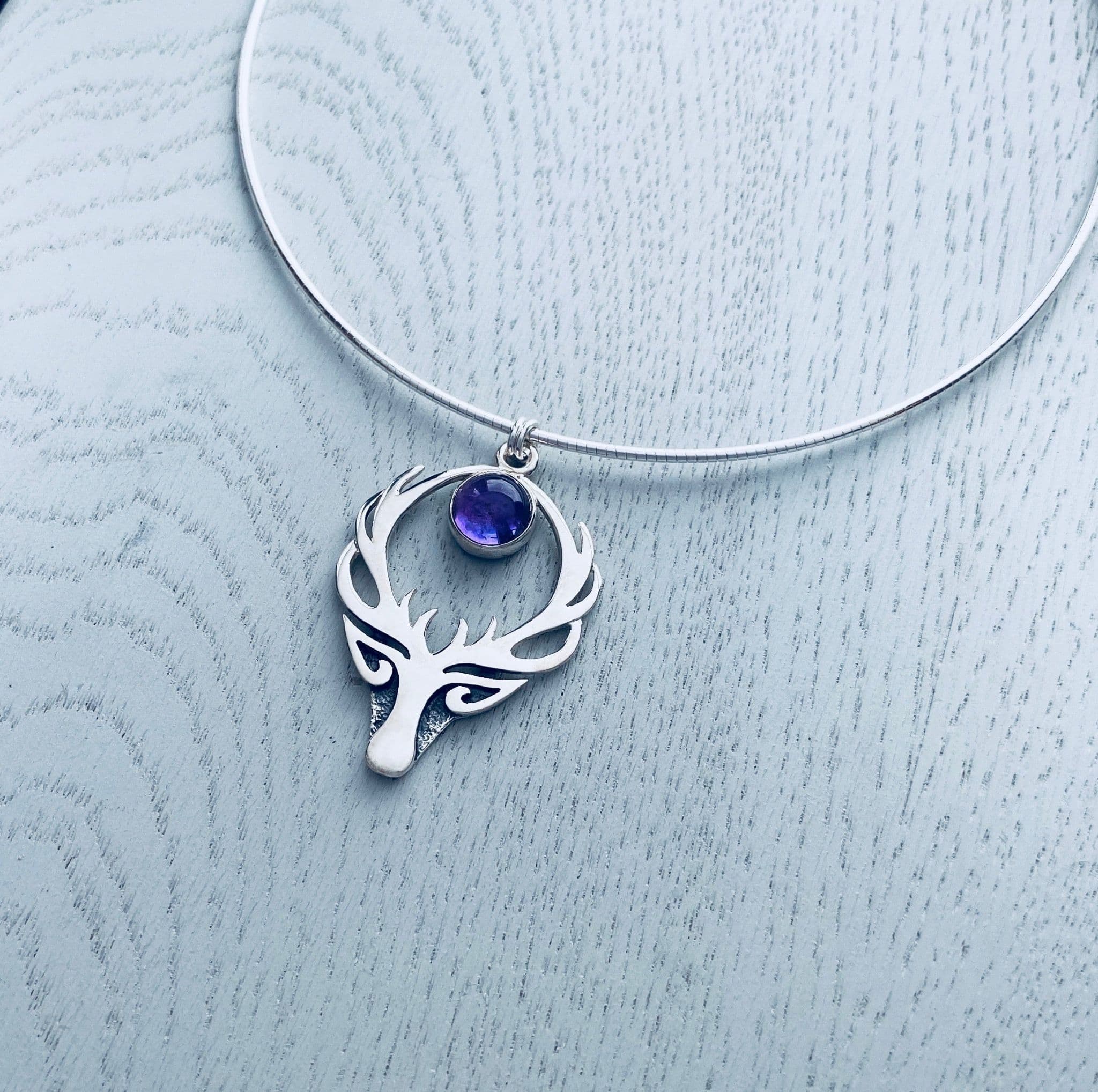 The image of an iconic statuesque Red Deer Stag is the inspiration Celina had to create this modern Celtic design of a truly Scottish emblem of the Highlands.